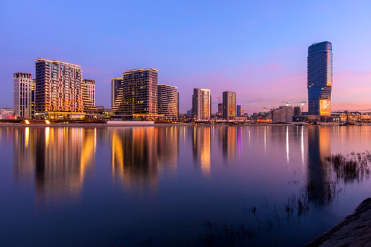 Modern contemporary acrhitecture district Belgrade Waterfront on river Sava, Belgrade, Serbia