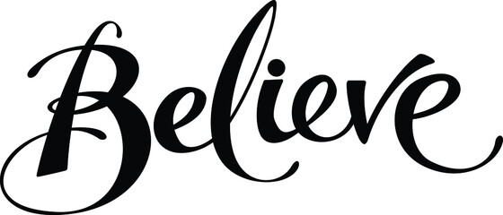 Believe - continuous one black line with word. Minimalistic drawing of phrase illustration