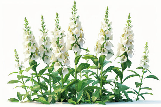 Beautiful White Foxglove Flowers in Bloom A Stunning Display of Nature's Elegance with Delicate Bell Shaped Flowers and Green Foliage Captured in a Serene Garden Setting