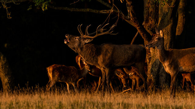 A red deer stag bellows out in the early morning light to signal the start of rutting season
