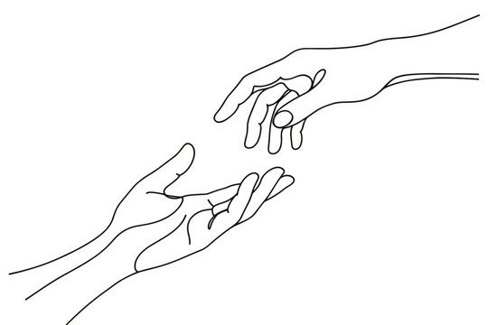 Two hands reaching out to each other in a minimalist line art style