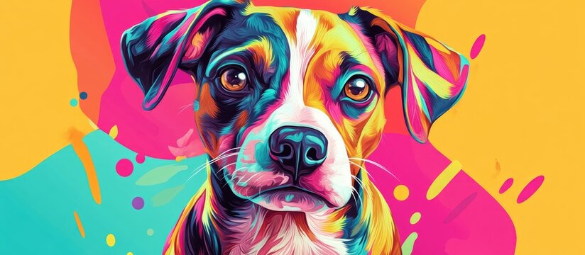 Vibrant and whimsical dog portrait in a pop art style featuring surreal elements and a magical playful depiction of a beloved pet