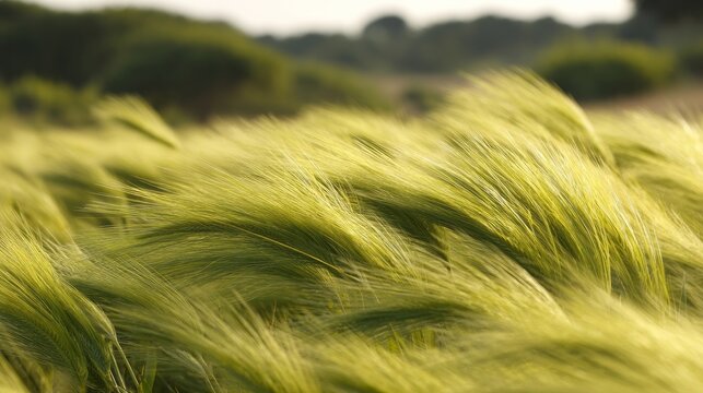 Whispering wild barley sways in a verdant sea, celebrating Lammas and Celtic harvest blessings under azure skies