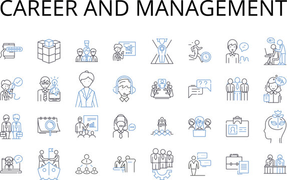 Career and management line icons collection. Profession, Occupation, Vocation, Employment, Business, Enterprise, Job vector and linear illustration. Workforce,Labor force,Staffing outline signs set