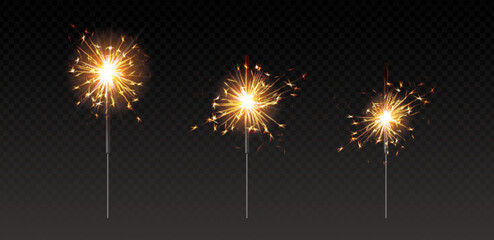Festive Christmas sparkler decoration lighting element. Sparkler vector firework. Magic light isolated effect. For the background of the holiday and birthday