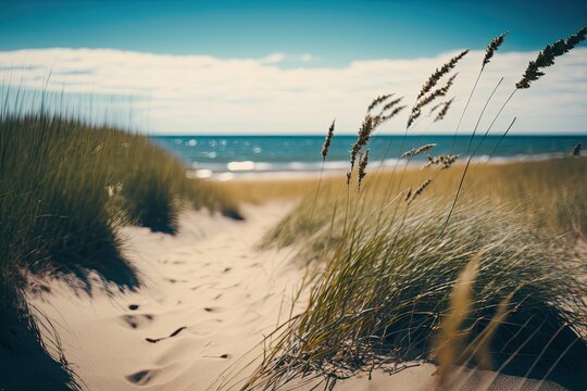 Dune grasses grow on the beach. Generative AI