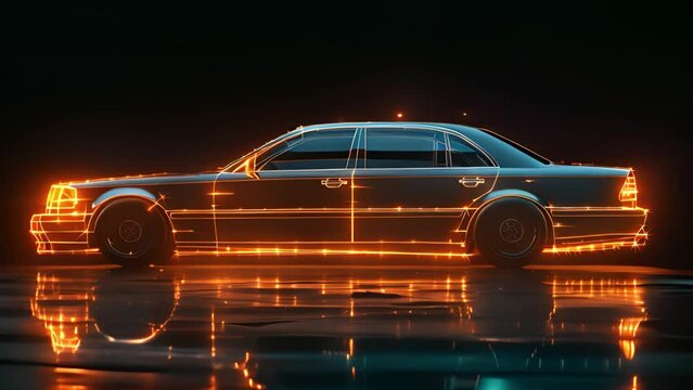 S Class luxury car with illuminated lights at night. Black background