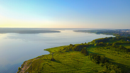 Early morning Aerial view of the Berd river flowing in the countryside, Siberia photo by drone