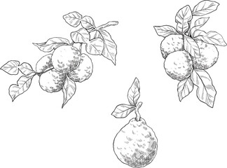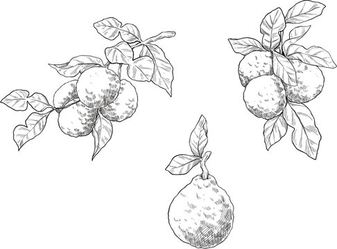 Bergamot fruit set line sketch illustration