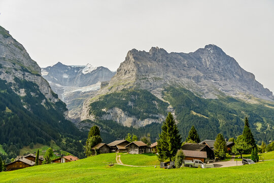 Grindelwald, Eiger, Eigernordwand, Alpen, Berner Oberland, Finsteraarhorn, Fiescherhörner, unterer Grindelwaldgletscher, Gletscher, Schreckhorn, Wanderweg, Bergdorf,  Sommer, Schweiz
