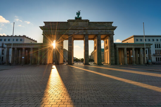 The famous Brandenburg gate at sunrise in Berlin. Germany