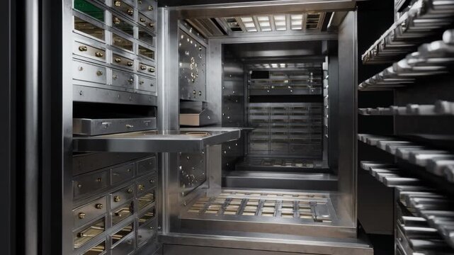 Medium angle capture of a cash vault interior highlighting customizable compartment layouts tailored for varied cash storage needs and quick retrieval.