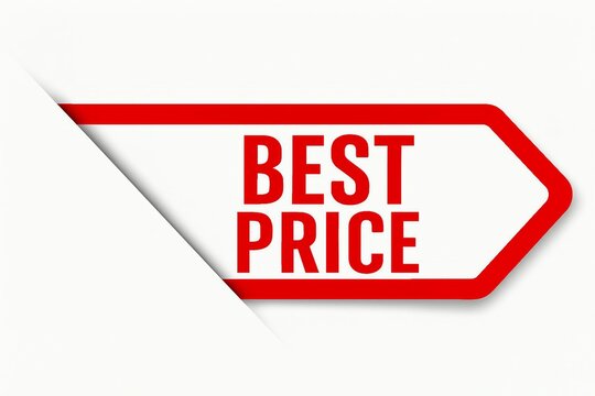 Red and white hexagonal tag with the words best price prominently displayed in bold red text