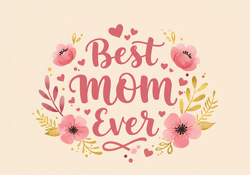 Best Mom Ever handwritten lettering quote. Elegant calligraphy for a Mother's Day card or gift. Vector typography illustration.