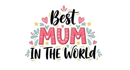 Best Mum In The World - Mother's Day SVG Design, Hand drawn lettering phrase isolated on white background, Illustration for prints on t-shirts, bags, posters, cards, mugs. EPS for Cutting Machine