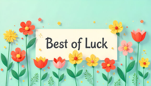 Elegant floral border frames "Best of Luck" in vintage botanical style