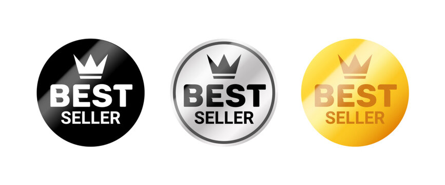 Best seller golden badge sticker sign. Vector best seller reward emblem certified winner stamp icon.