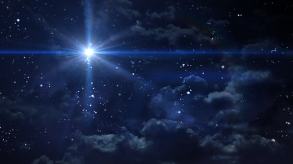 Star Over Bethlehem. Nativity of Jesus Christ with Bright Star in Starry Night Sky