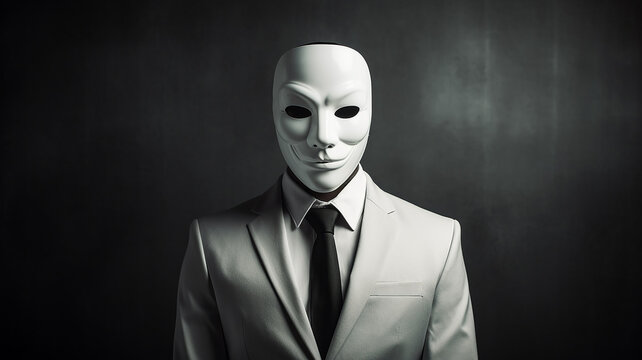 a businessman in a white mask hiding his face