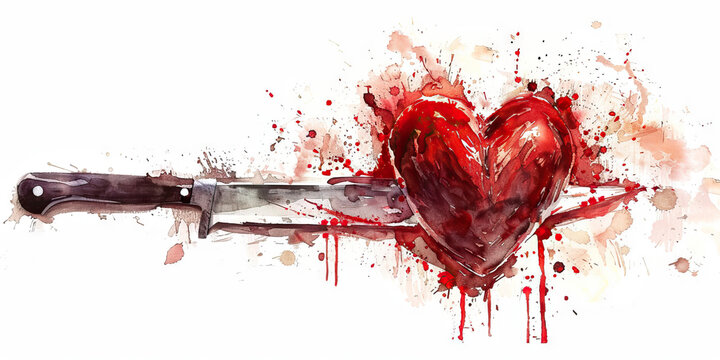 Betrayal: The Stabbed Heart and Bloodied Knife - Imagine a heart with a knife stabbed into it, illustrating the pain of betrayal