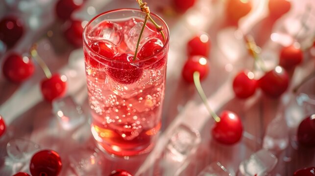 Trendy sleepy girl cherry mocktail. Popular Magnesium cherry drink for relax, deep sleeping. Bedtime routine for better sleep concept. Generative ai