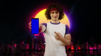 Neon disco night event promotion with microphone illustration