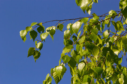 Leafs of Betula pendula tree, silver birch, spring.