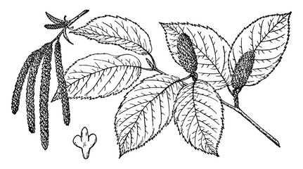 branch of birch tree (Betula pendula, silver birch, warty birch, European white birch) with green leaves and catkins