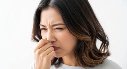 手の匂いを嗅いで臭さに困惑する日本人女性