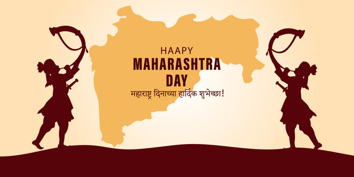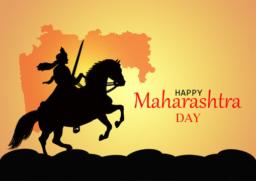 Happy Maharashtra Day Banner and Greeting Card Design. Minimal and Modern Maharashtra Diwas Background with Shivaji Maharaj and Text Vector Illustration