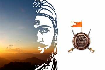 Maratha Shree Chhatrapati shivaji maharaj with historical raj shiva mudra with bhagva flag
