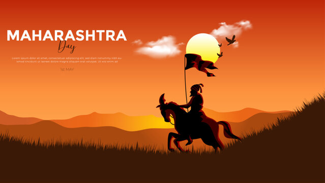 Maharashtra Day Celebration visual illustration and graphics in warm color scheme with Shivaji Maharaj