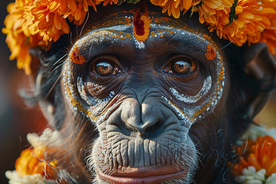 Happy Hanuman Jayanti Concept. Hindu God Hanuman extreme closeup. Generative AI