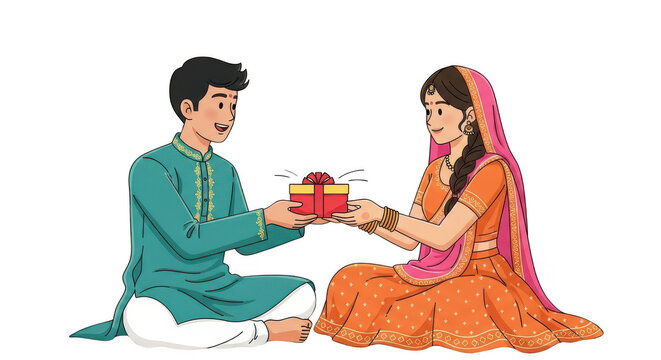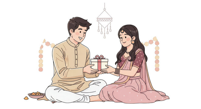 Brother Giving Gift to His Sister During Bhai Dooj Festival after Diwali