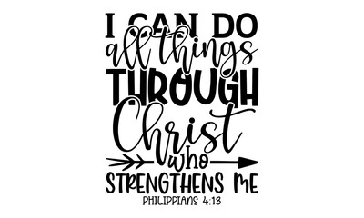 I can do all things through Christ who strengthens me philippians 4:13 - Bible Verse t shirts design, Hand drawn lettering phrase, Calligraphy t shirt design, Isolated on white background, svg Files f