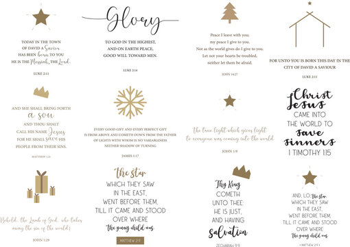 Christmas Bible Verses set, holiday bundle, Christmas scripture quotes, Merry Christmas, Holy Night, Happy New Year, Christmas sayings, vector illustration