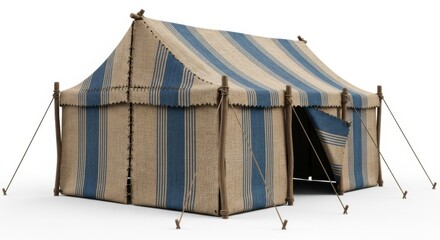 Traditional hebrew desert tent. Ancient nomadic shelter from biblical times. Oriental dwelling with striped fabric for history concept.