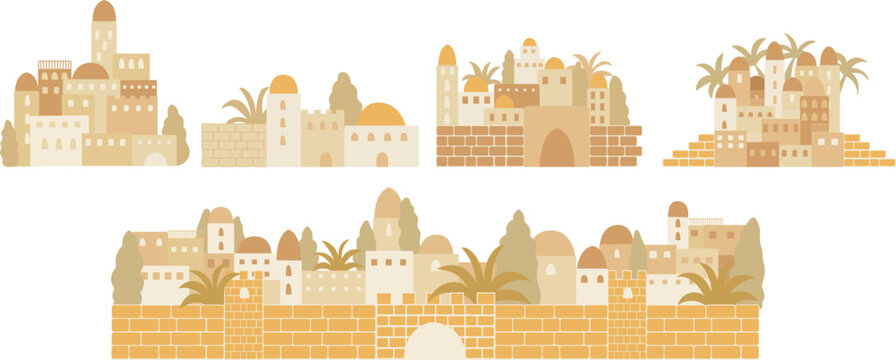 Set of ancient  biblical city buildings separate elements . Decoration for museum events flyers,  illustration, children bible,greeting cards,holiday events, print