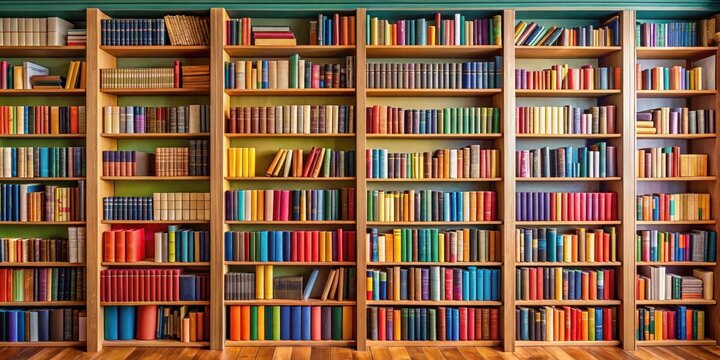 Bookcase filled with books of various colors and shapes in a cozy home library, bibliophile decor, colorful bookshelves