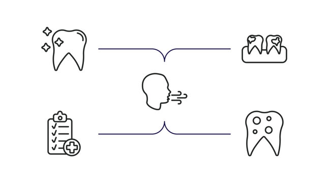 dentist outline icons set. thin line icons such as tooth whitening, dental plaque, breath, health report, bicuspid vector.