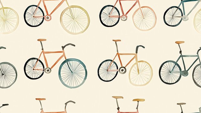 Watercolor bicycle pattern, pastel hues, repeating design