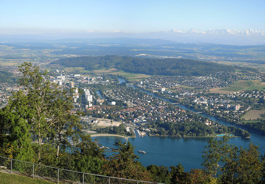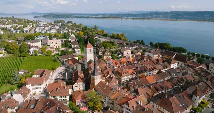 Aerial view of the town of La Neuveville on the shores of Lake Biel, Switzerland