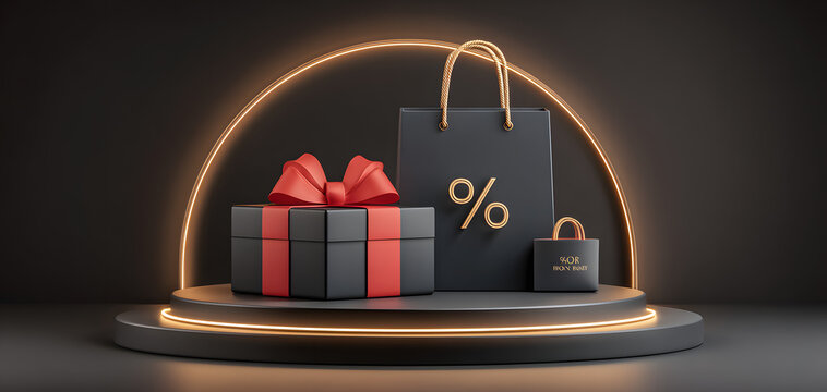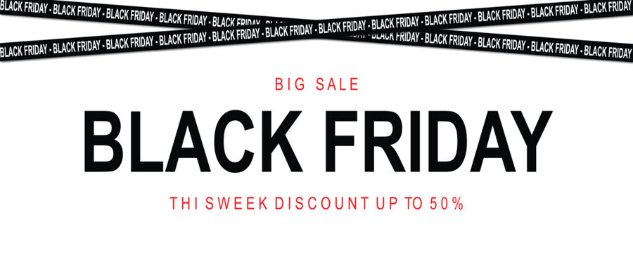 Black friday sale promotion with red ribbon and discount