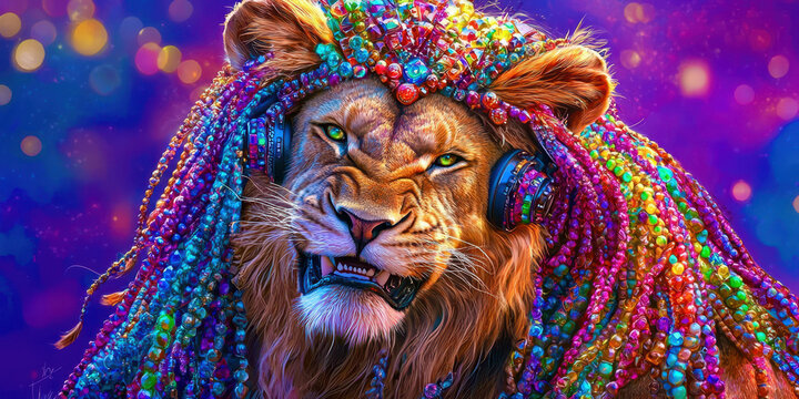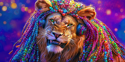 A group of friends enjoy a sunny day at a festival, dressed in eclectic outfits with vibrant accessories and big smiles, creating a lively and fun atmosphere.
