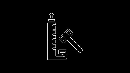 White line High striker attraction with big hammer icon isolated on black background. Attraction for measuring strength. Amusement park. 4K Video motion graphic animation