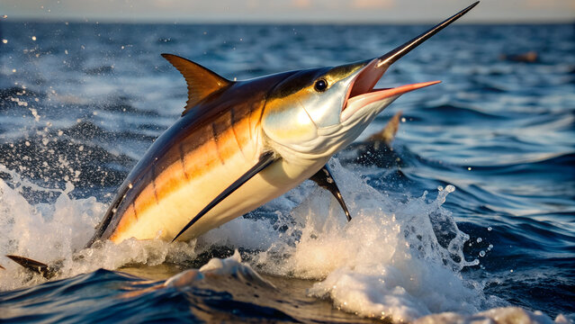 marlin fish jumping out of the water being caught