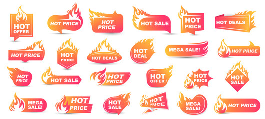 Hot price deal promotion labels with flames. Vector illustration. Shop sale or discount promotion vector banner