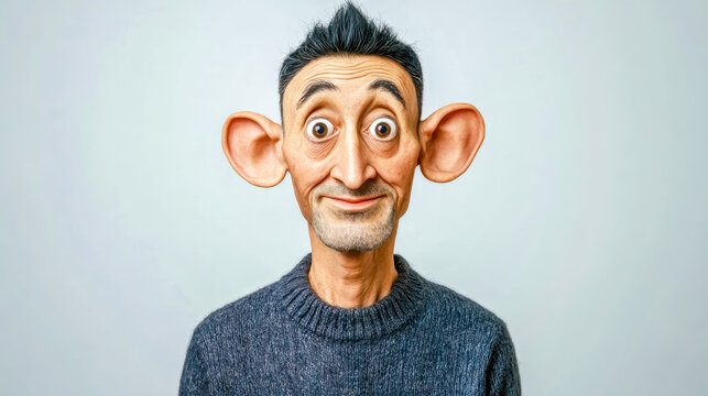 Lop-eared man, big ears. Ears defect. Patient before plastic surgery. Waiting for otoplasty