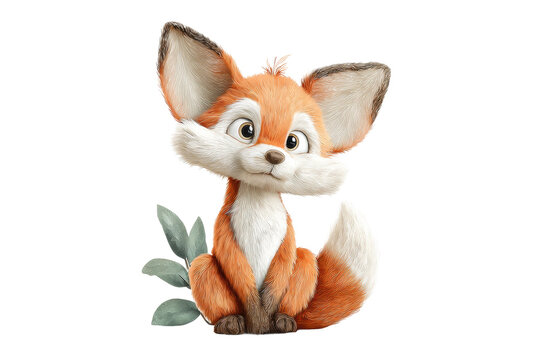 PNG Cute cartoon fox with big ears and whiskers sitting beside leaves