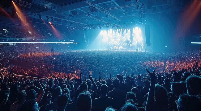 A pop concert in a big concert venue full of thousands of people at night. Generative AI.